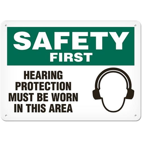 GHS Safety (Incom Manufacturing), SS5009AL, Sign Safety First "Hearing Protection Must Be Worn in This Area", Aluminum with UV Lamination, 10" x 14"