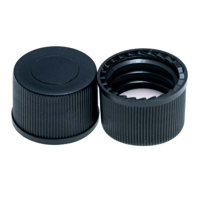 J.G. Finneran Associates, 1264015, 10-425 mm. Screw Thread Solid Top Cap, Black PP, PTFE/F217 Lined