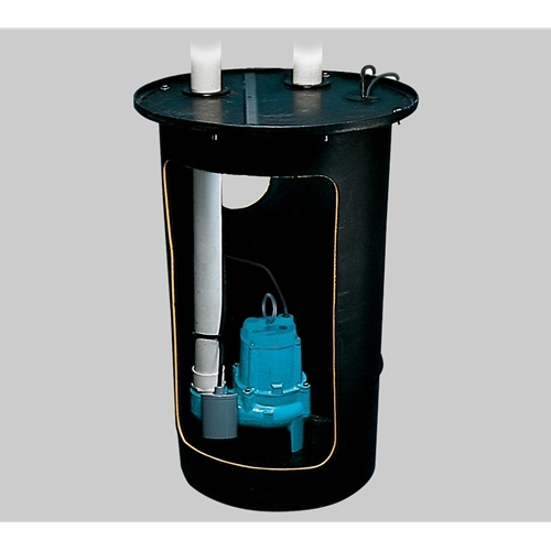9S-SMPxRT-K Pre-Packaged Simplex System w/ 18"x30" Roll Top Poly Basin w/ 4" Hub, 1-Piece Structural Foam Split-Fit Cover (2" or 3" Vent / 2" Discharge), 4/10 hp 115V Pump & 2" Check Valve