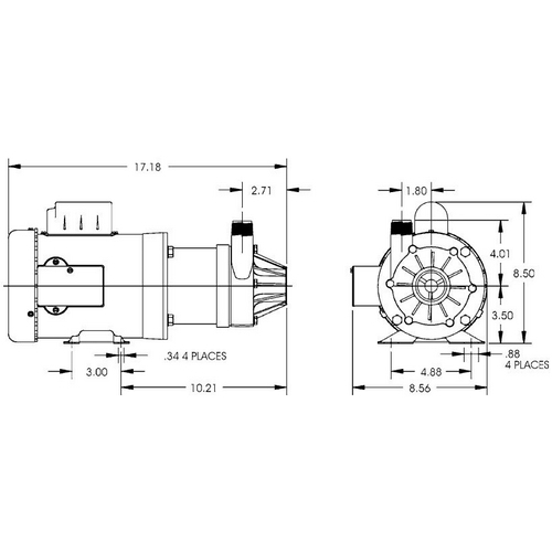 The TE-7-MD-HC Series features leakproof, seal-less magnetic drives and is designed for in-line, non-submersible use. These pumps feature polyphenylene sulfide (e.g., Ryton), Viton, carbon, and ceramic parts for superior corrosion resistance. Each pump is powered by a thermally protected, totally enclosed fan-cooled permanent split capacitor motor with ball bearings. The pump's ceramic shaft and thrust washers are 99.5% pure alumina for excellent wear resistance and trouble-free service.