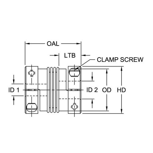 The BWLC (Bellows Clamp) Series coupling specifically addresses higher torque and bore capacities in the area of motion control. The BWLC Series offers the highest amount of torsional stiffness for accuracy and repeatability. The BWLC Series coupling features a corrosion resistant steel bellow and aluminum or steel hubs.