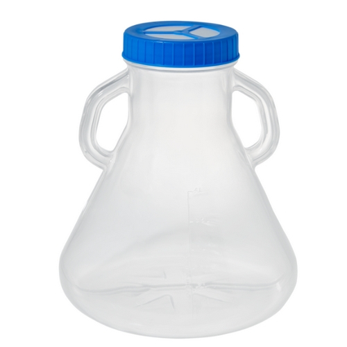 MTC Bio's Erlenmeyer Shaker Flasks are made of polycarbonate, PETG or styrene/butadiene (Jumbo Flasks only). The polypropylene screw caps are vented with 0.2um membranes to increase air transmission and enhance cell growth. The mouth size conforms with the international SBS standard, for quick, secure connection to bioreactor equipment.Polycarbonate flasks and Jumbo flasks have baffled (ribbed) bottoms to provide increased oxygenation and mixing efficiency even at lower shaking speeds. All flasks, regardless of size, are individually wrapped and gamma sterilized to SAL 10-6, and they are free of RNase, DNase, pyrogen, endotoxins and human DNA.