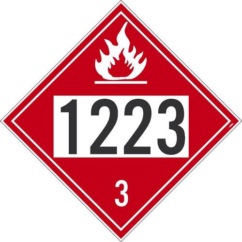 NMC, DL182P100, DOT Placard Sign "Flammable 1223 3", 10" x 10", PS Vinyl, 100 pcs