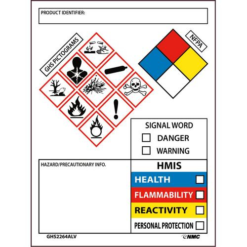 National Marker Company (NMC), GHS2264ALV50, 4" x 3" GHS Secondary Container Label