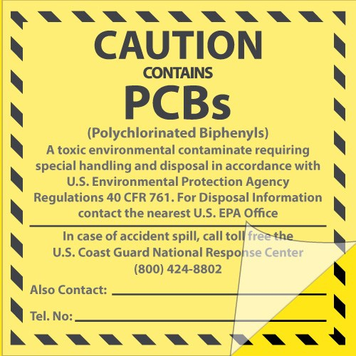 NMC, HW4SL25, 6"x6" Pressure Sensitive Vinyl Self Lamination "Caution Contains PCBs" Label