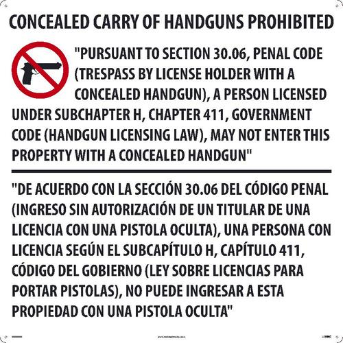 NMC, M460ACP, 30" x 30" Aluminum Composite Panel "Texas Concealed Handgun Prohibited" Sign