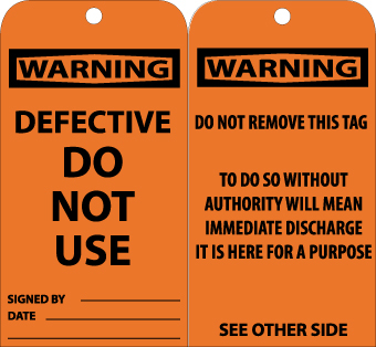 NMC, RPT130, Accident Prevention Tag w/Legend: "Defective Do Not Use"