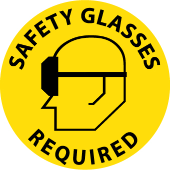 NMC, WFS15, "Safety Glasses Required" Walk on Floor 17" Diameter Sign, Pressure Sensitive Vinyl