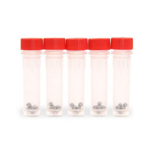 Tubes and grinding media are DNase/RNase-free. Racks are reversible - one side holds 25 x 10 mm and 12 mm tubes as well as 1 to 5 mL cryogenic or microtubes. The other side holds 16 x 0.2 to 0.5 mL tubes.