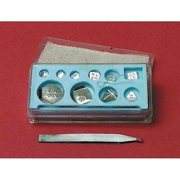 Includes 1 each of 1, 5, 10, 50, 100, and 500 mg weights, and 2 each of 2, 20, and 200 mg weight