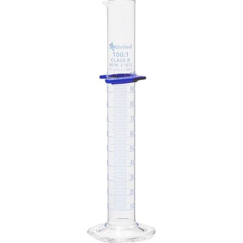 United Scientific™ graduated cylinders comply with ASTME1272, Class B standards. Each cylinder features a double metric scale, calibrated to contain. Borosilicate glass cylinders with pour spouts feature heavy uniform wall tubing and attached glass hexagonal bases. All cylinders include bumper guards.