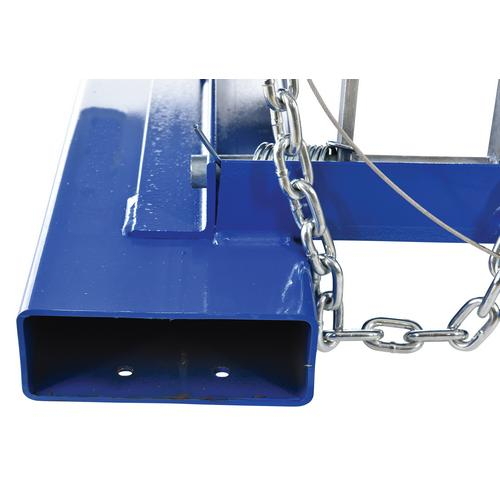 Hopper automatically dumps when bumper release contacts the front of the dumpster. Hopper returns to an upright and locked position automatically after it dumps. Also includes a cable that may be operated from the seat of the fork truck to manually dump the hopper. A safety restraint is provided to secure the hopper to the fork truck. Usable fork pockets are 7-1/2"W x 2-1/2" H. Optional leak proof design sold separately.