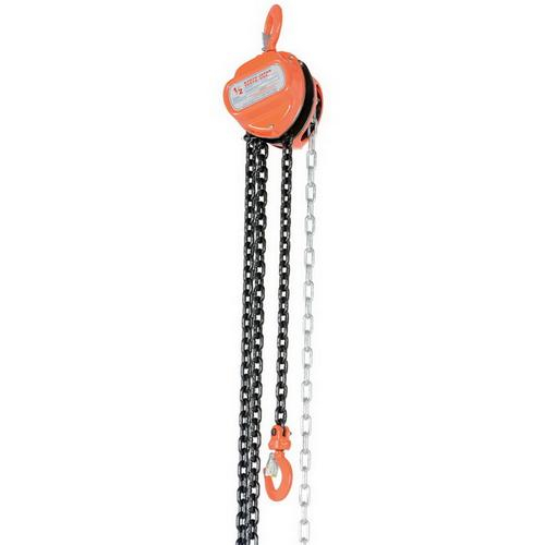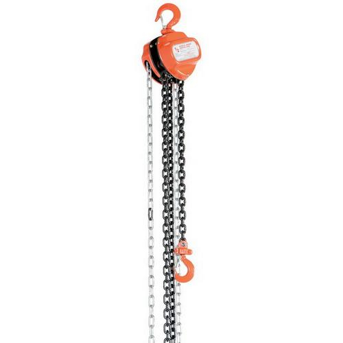 This portable, lightweight Hand Chain Hoist is durable and easy to operate. Compact design and low headroom allow installation in confined areas. Enclosed double ratchet pawls with self adjusting disc brake standard. Designed with a safety factory four (4) times rated capacity. Individually tested at 150% rated capacity. Features black chain tempered to ISO 3077, galvanized pull chain, hardened two-stage gears and forged steel upper and lower hooks with safety latches. Constructed of high quality steel components ideal for industrial applications.