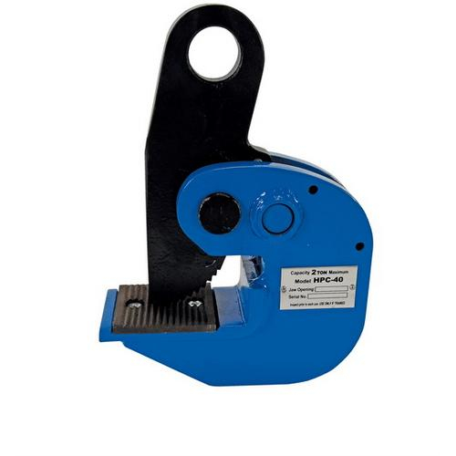 The Horizontal Plate Clamp is designed for lifting plate material in horizontal position. Heavy-duty steel construction for years of reliable use. Lift only one (1) clean and oil free plate at a time. Not designed to use on stainless steel or aluminum plates. For use with materials with a surface hardness to 30 RC (300 HB).