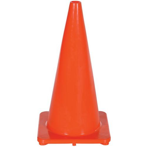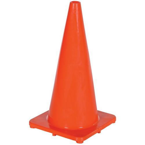 This durable all weather cone is constructed from one-hundred percent PVC for long life. The construction prohibits fading and cracking. Will retain its shape for years of reliable service. Features a one piece mold. High-visibility orange in color.