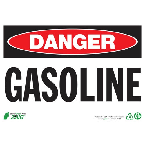 Zing Green Products, 1101A, Eco 7"H x 10"W "Danger Gasoline" Recycled Aluminum Safety Sign