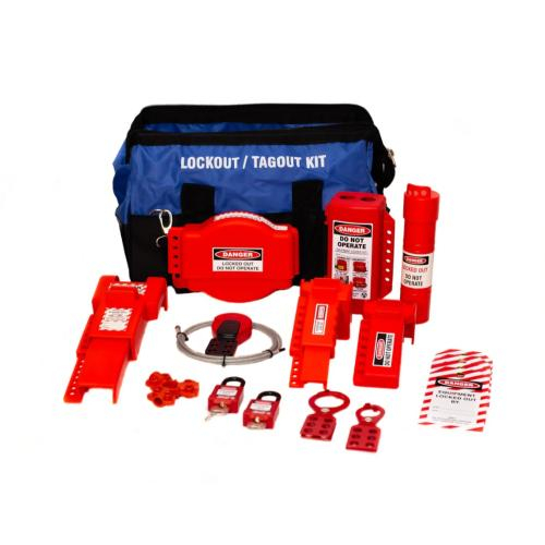 Zing Deluxe Valve Lockout Bag Kit stores and transports lockout/tagout devices and documents. The bag is made from durable nylon. Wire framing around the top edges keeps the bag open when in use. A shoulder strap and two handles allow the bag to be easily carried to job sites. The bag has a 16" base and includes: (1) #7343 Lockout Tags, Do Not Operate, 10 Pack, (1) #7106 1" Hasp, (1) #7107 1.5" Hasp, (2) #7030 1.5" Shackle Padlocks, (1) #7271 Gate Valve Lockout 1-6.5", (1) #7290 Cable/Valve Lockout, (1) #7605 Butter y Valve Lockout, (1) #7514 Pull Handle Valve Lockout, (1) #7249 Ball Valve Lockout 3/8" to 1.4", (1) #7250 Ball Valve Lockout 1.5" to 2.5", (1) #7294 Multi-purpose Plug/Cylinder/Valve Lockout, (1) #7632 Pneumatic Lockout